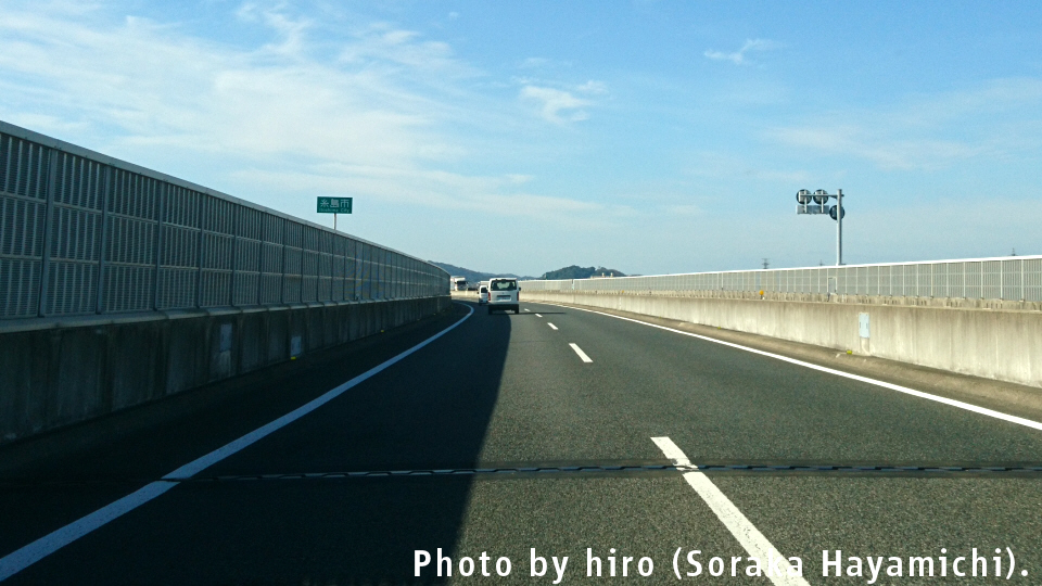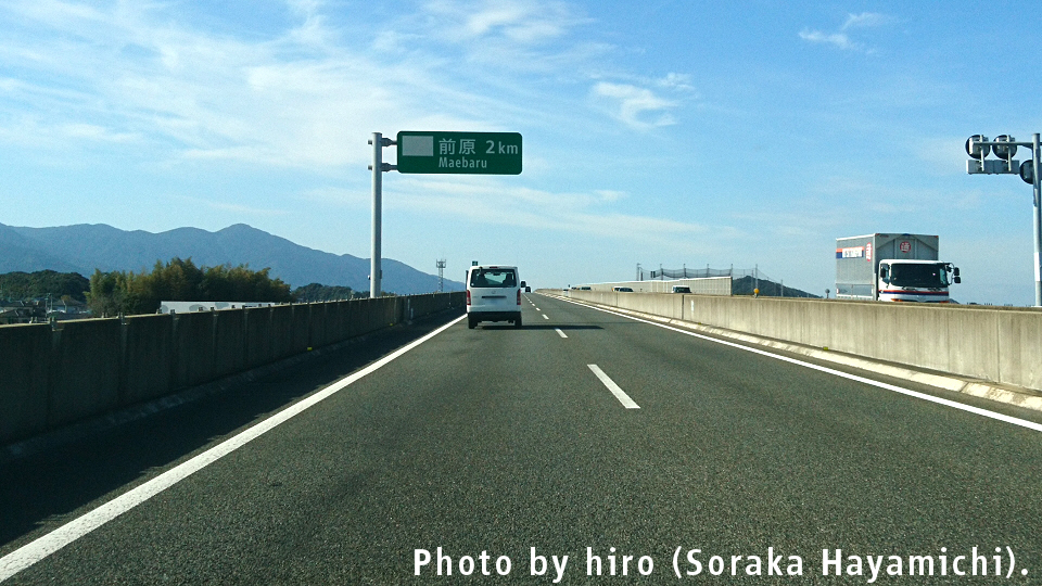 ここから前原インターまでは線形が緩やかになり、最大時速100キロまでの走行が可能に。