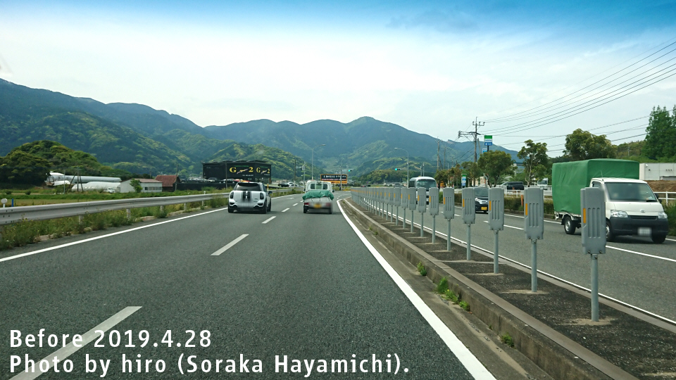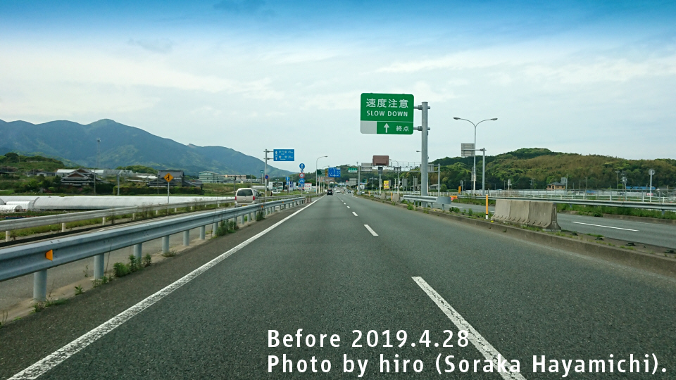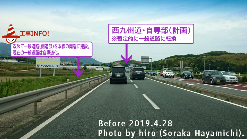 2018年現在では写真の場所で自専道がひとまず終了し、側道部が暫定的に本線に流れ込む。