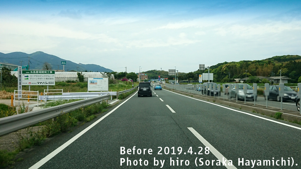 左手に見える側道部分は、2019年に完成した今宿バイパスの一般部。