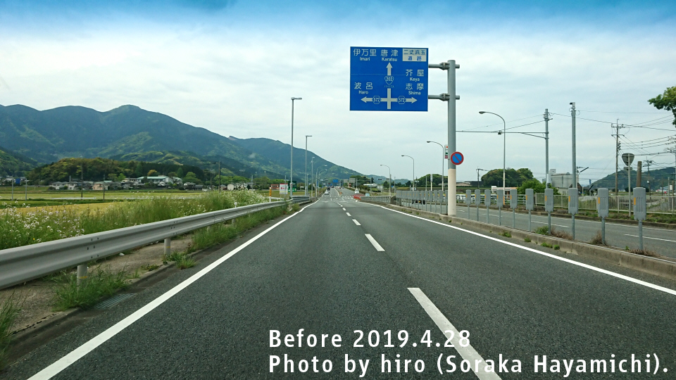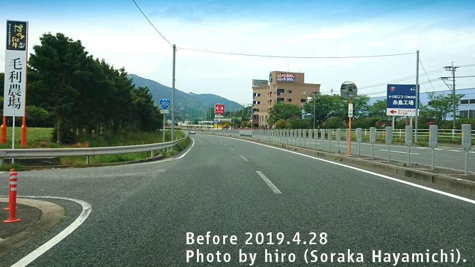 二丈福井地区の写真の場所で、福岡市から続いてきた今宿バイパスは終了。