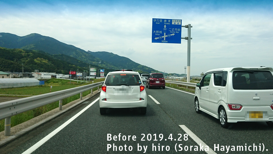 青看の距離は国道202号経由のものであり、E35西九州道経由では微妙に数字が異なる。