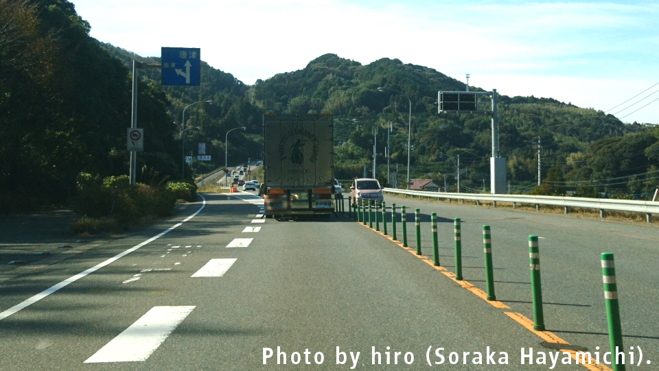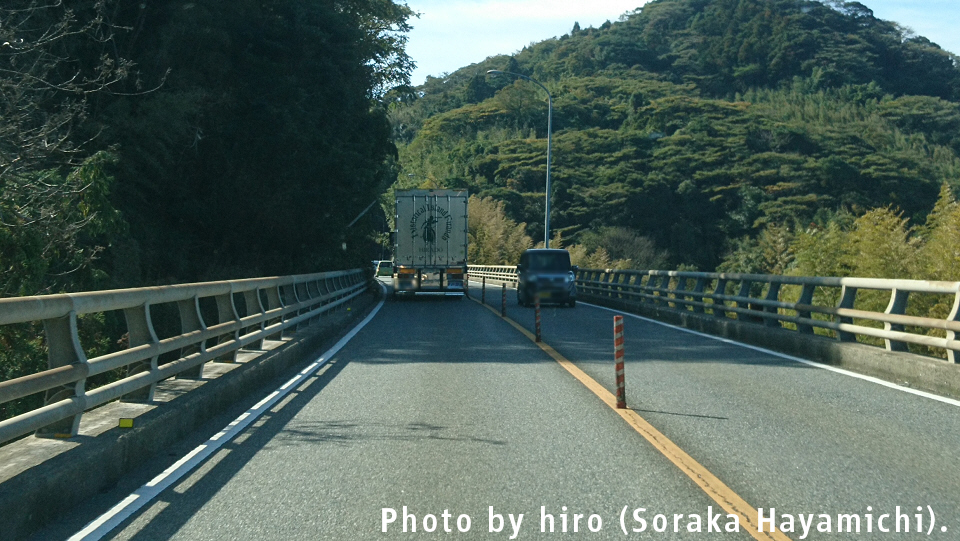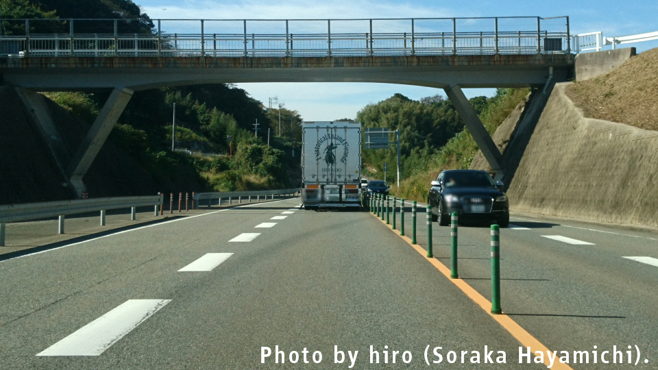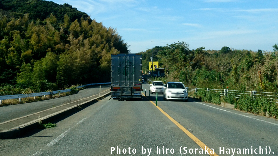 大型車の幅員がギリギリであり、到底、高速道路のような走行は出来ない。