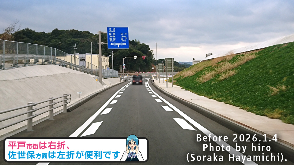 旧・農道経由で平戸市街まであっという間に移動できるようになり、時短効果が発揮されている。