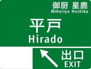 御厨町地区・星鹿町地区への案内があるが、下り方向の場合は手前の松浦インターからの方が便利。