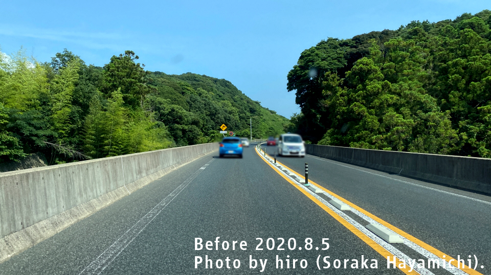4車線化へ向けた工事が実施されており、幅員減少に伴う速度規制が行われていた。