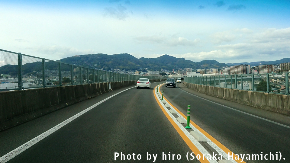佐世保港・佐世保市街は高架構造で通過する。ココだけ見ると都市高速に見える。