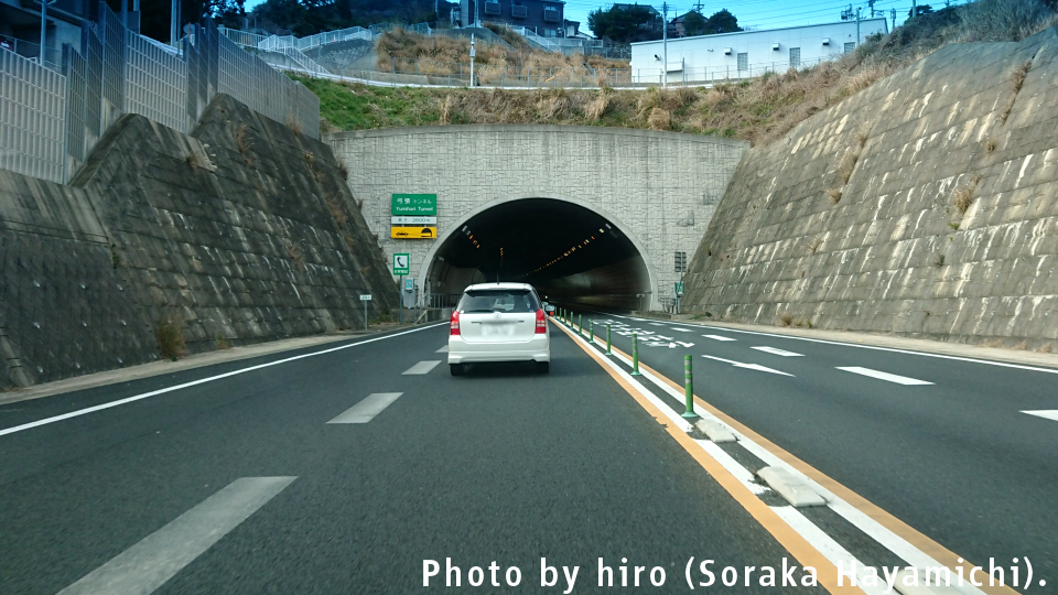 目の前にある弓張岳をトンネルの形で貫通。2.6kmに達する長距離モノで、当然のごとく大渋滞のメッカである。