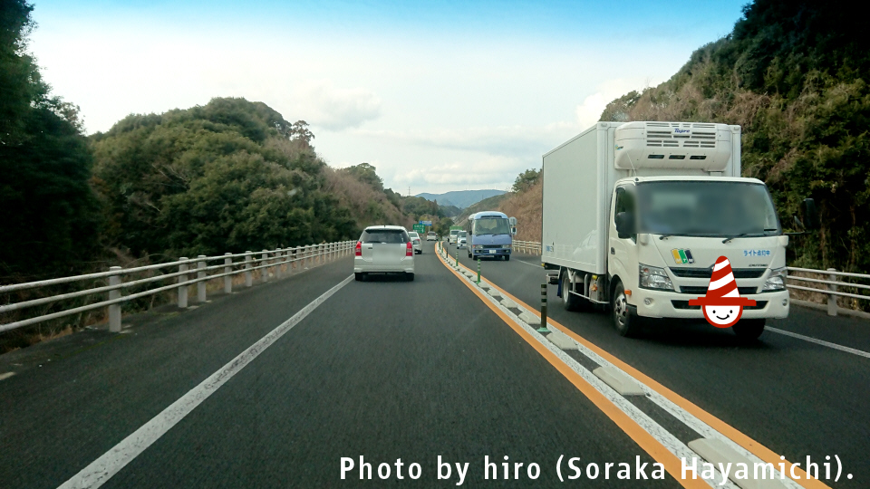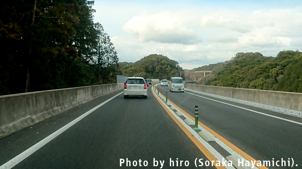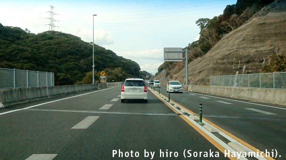 対向車がひったきりなしに来る。4車線化を理由とした有料化は、残念ながら当然と言わざるを得ない。