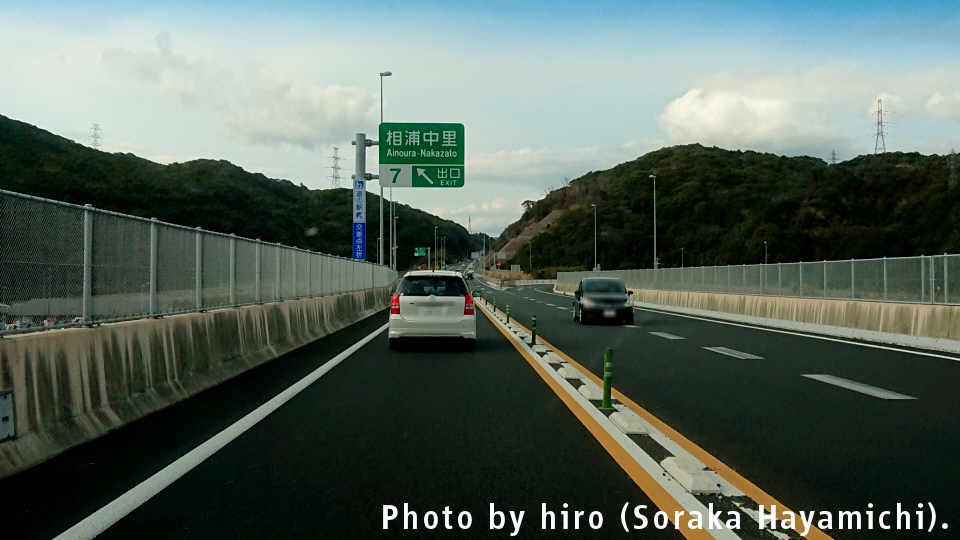 中央インターの手前で、最初から4車線分の敷地が確保された高架区間を通過する。