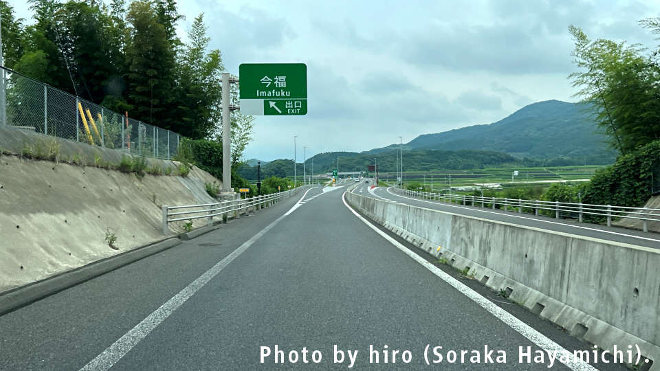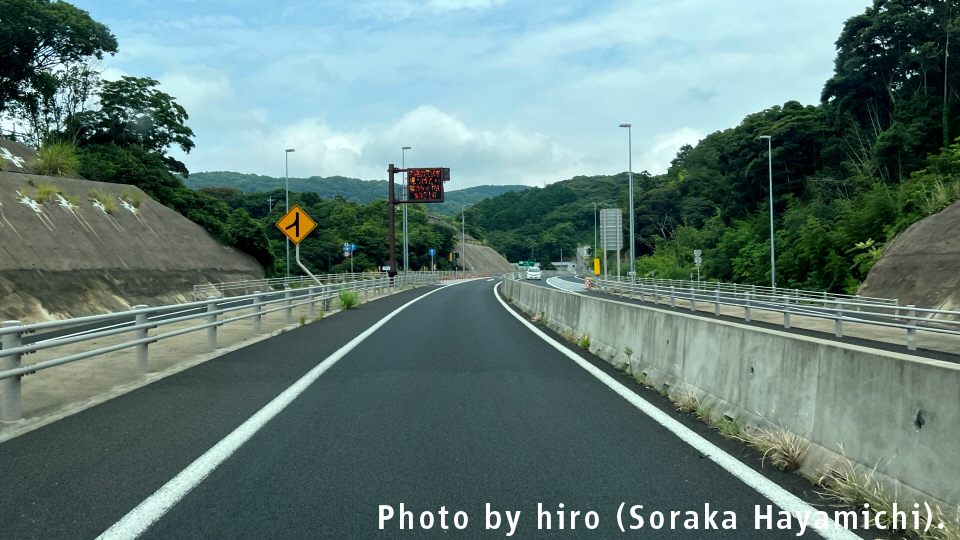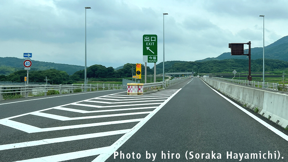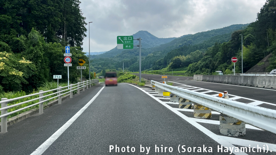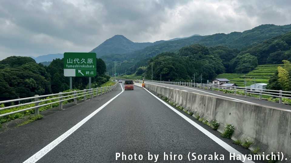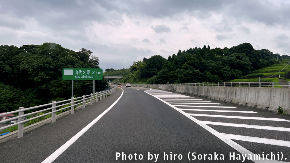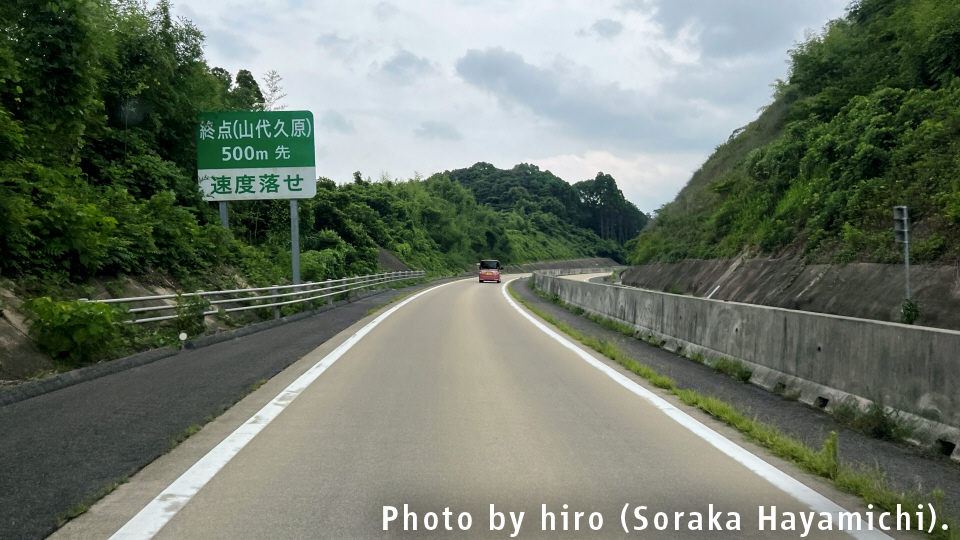 残り1km未満に達した所で、山代久原インターまで下り坂。