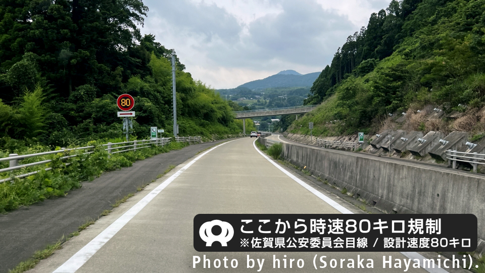 ここから時速80キロ規制(佐賀県公安委員会目線 / 設計速度80キロ)