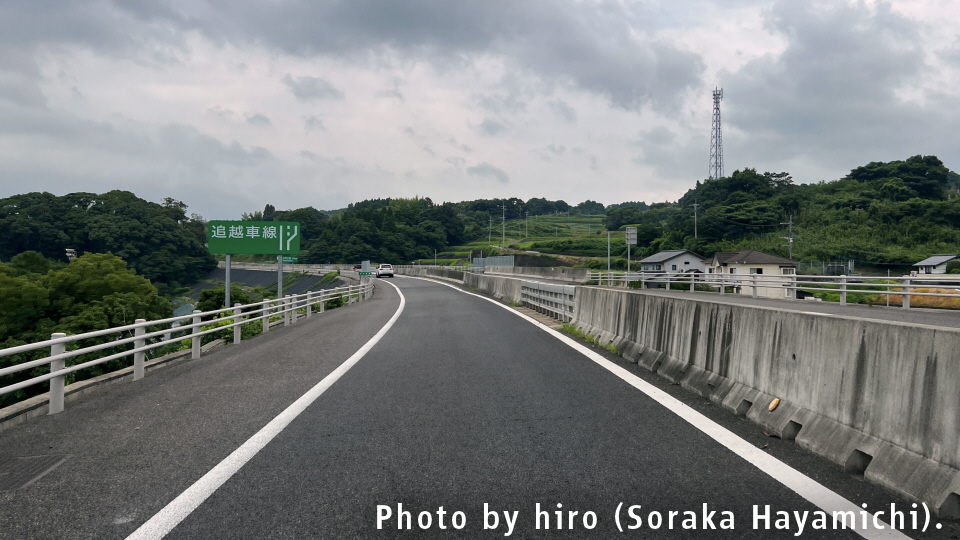 浦ノ崎地区に入った所で追越車線が一時的に復活する。
