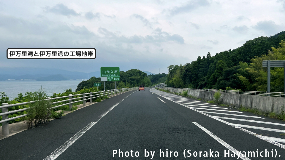 左手に伊万里湾と伊万里港周辺に広がる工業地帯が見えてくる。