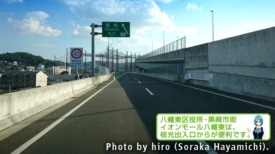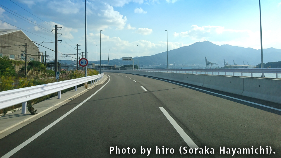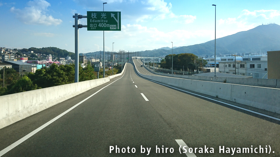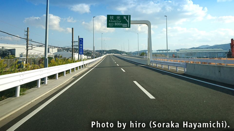 次の枝光出入口までは、洞海湾のそばをなぞるように通過している。