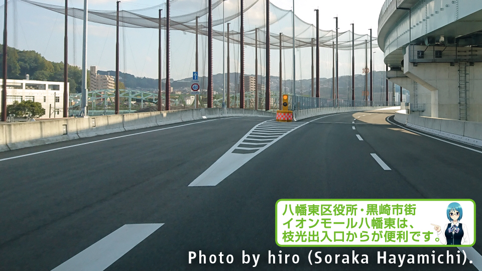 この先の東田JCTでは黒崎バイパスに分岐できないため、黒崎方面はココが最寄りとなる。