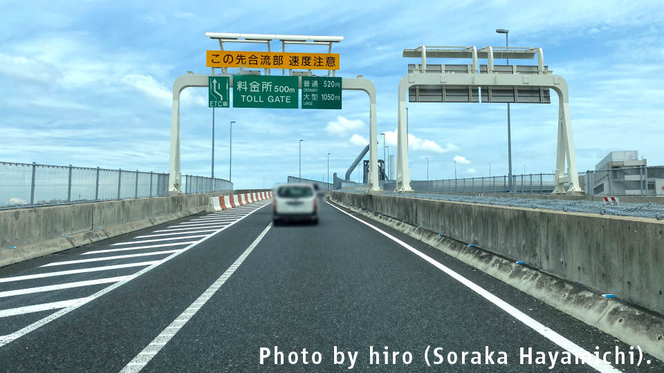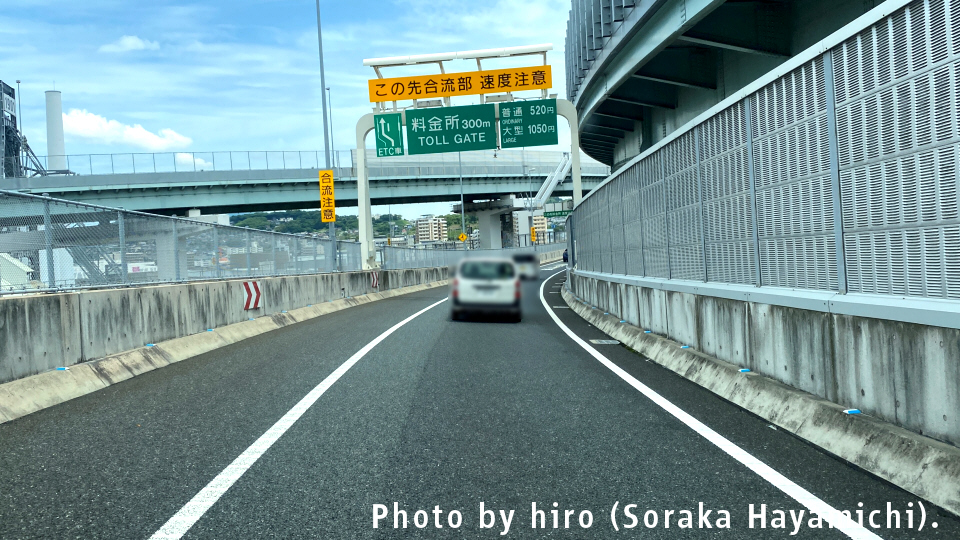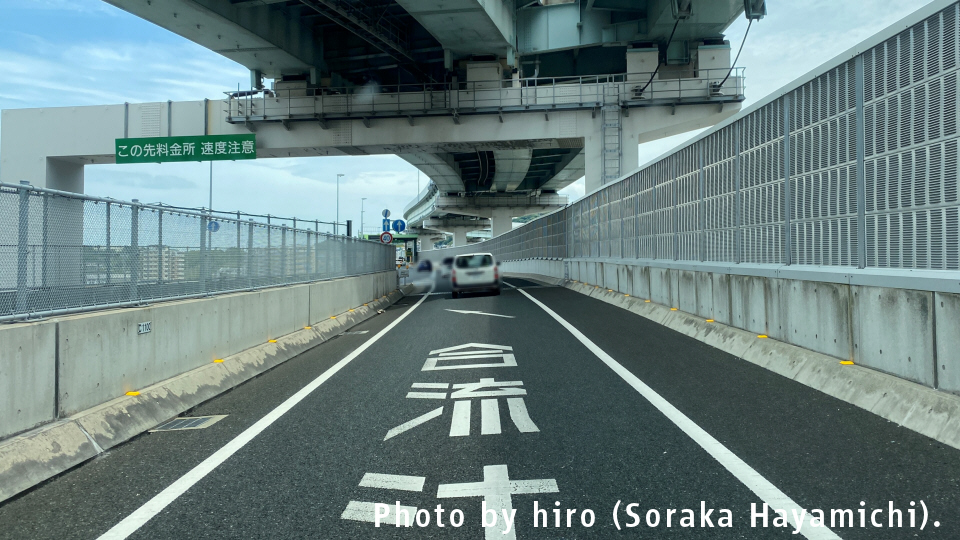 この先合流部 速度注意 料金所500m