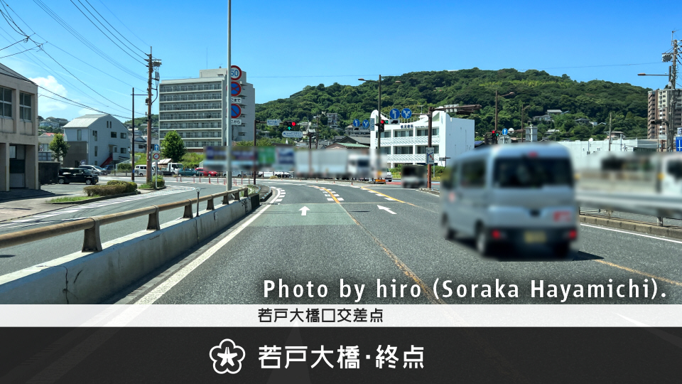 地上で若戸大橋口交差点に到達し、若戸大橋は終了。