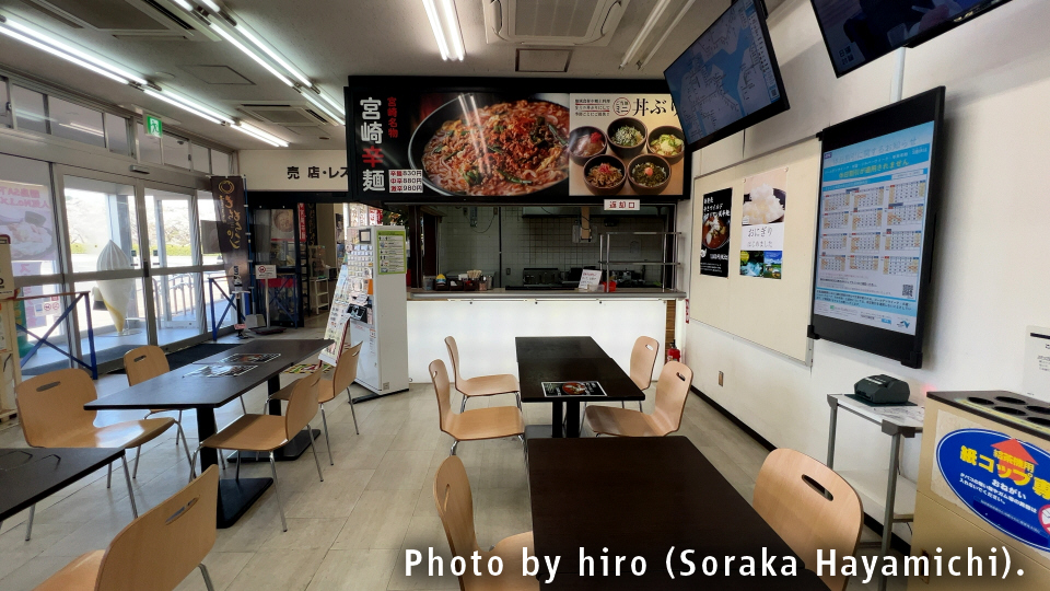 食堂・レストランでは宮崎の郷土料理を振る舞い、購買施設では熊本県・鹿児島県を突破したことから、両県のお土産品が整っている。