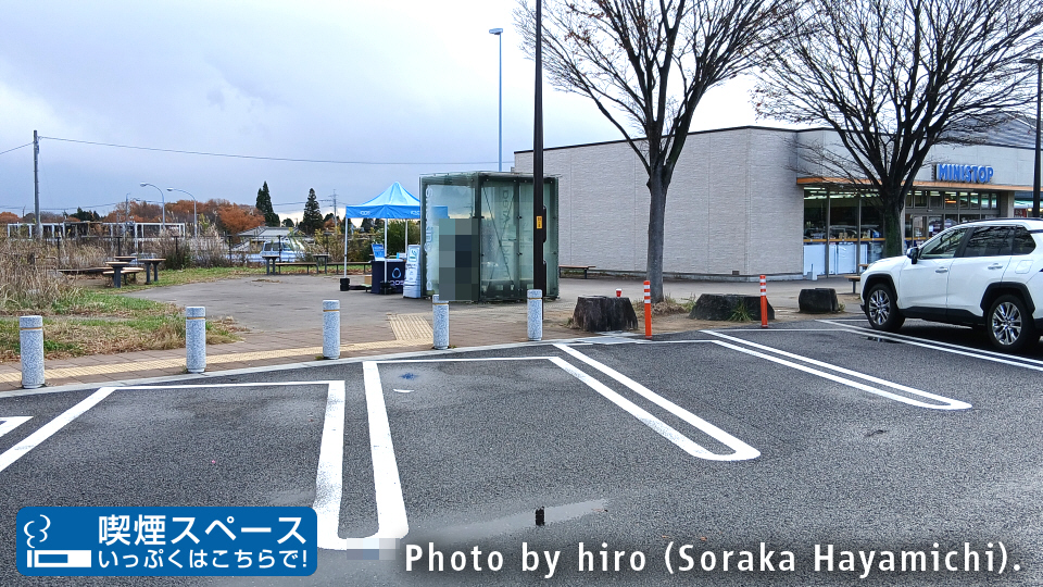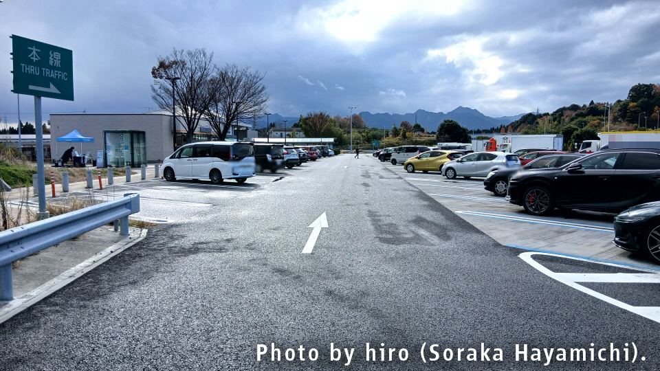小型車は購買施設・トイレ前に確保された部分が主体で、その後ろは大型車との兼用となっている。
