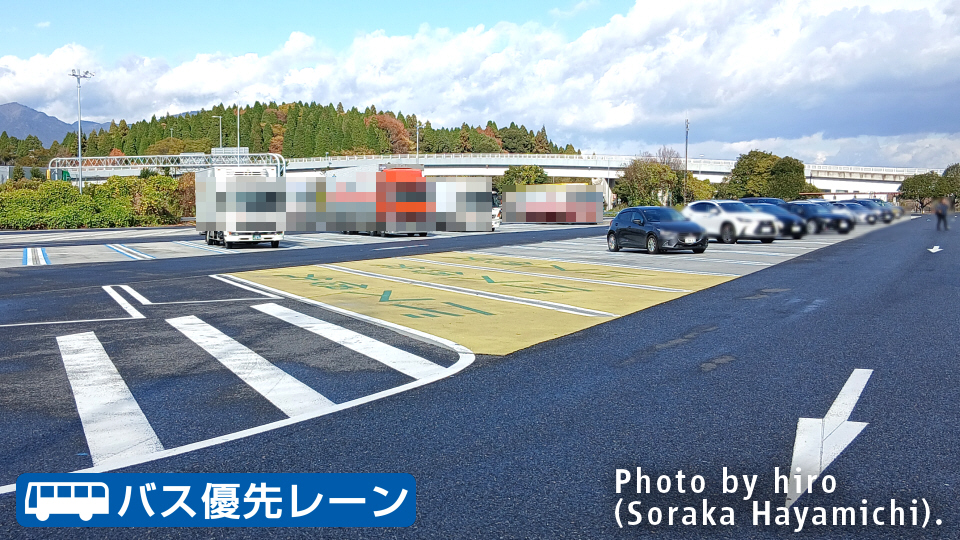 出口通路寄りの場所にバス優先レーンを確保。3台分しか見かけなかった。