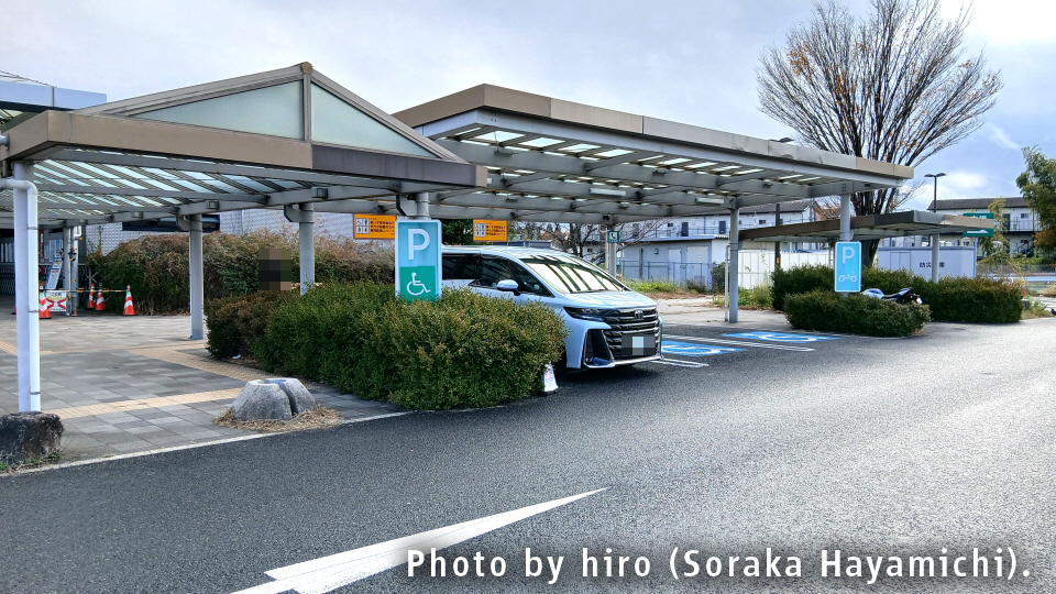 トイレの近くに身障者・二輪車向け駐車場を確保。
