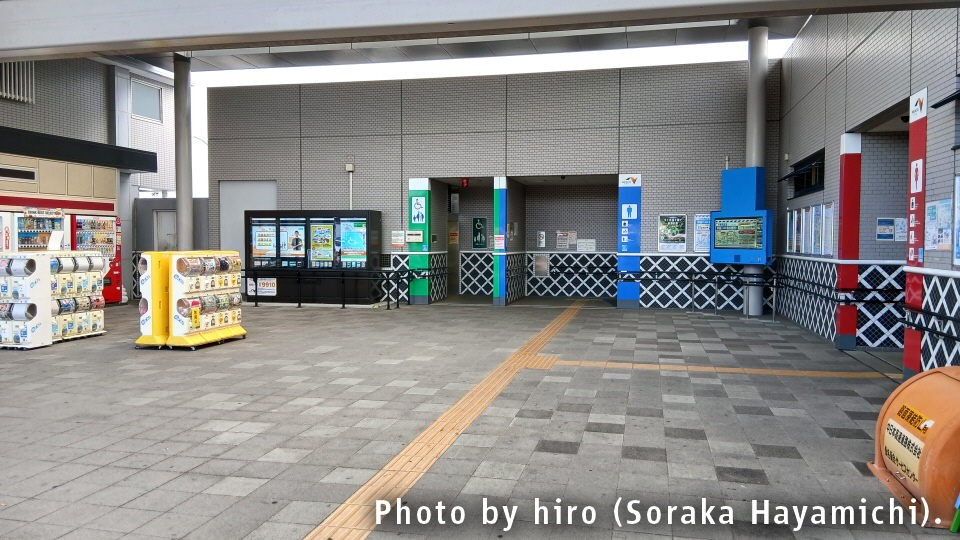 南口にはスタンプ台・自動販売機があり、深夜時間帯ならココまでは24時間利用可能。