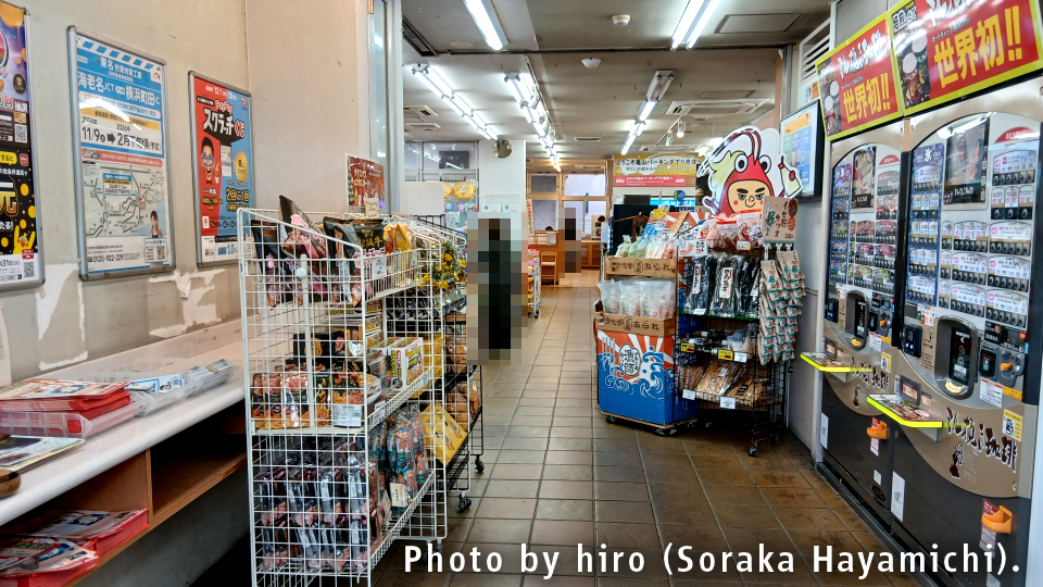 トイレがある南口沿いにテイクアウトコーナーと自動販売機コーナーあり。