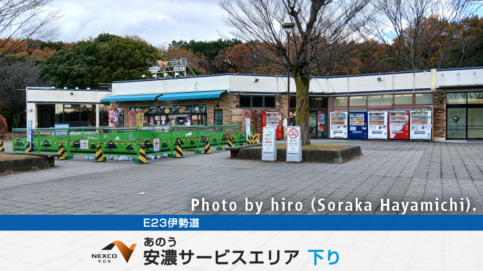 安濃(あのう)SA下りは、津市大里睦合町に設置されている、E23伊勢道のサービスエリア。同路線唯一のサービスエリアである。
