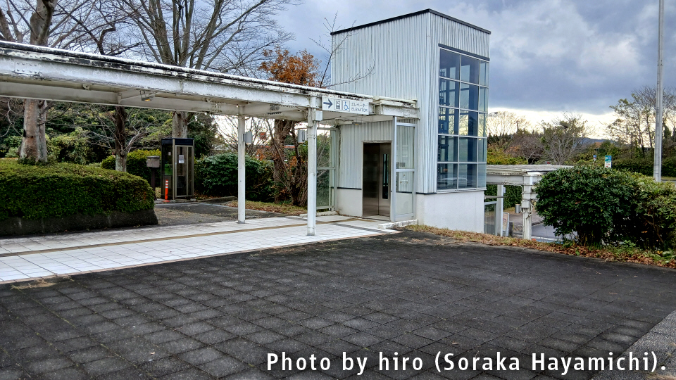 地上に駐車した身障者相手に、後から増備されたエレベーターを設けてトイレへ行きやすくしている。