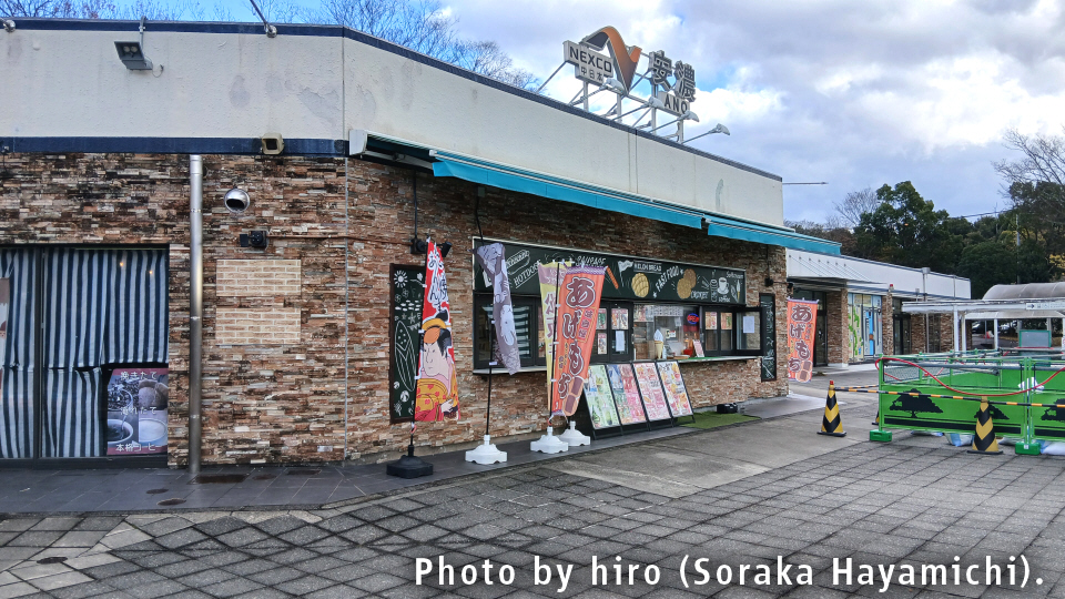 購買施設は高台へ登る構造を採っており、昔のサービスエリアでこの手のモノが散見された。