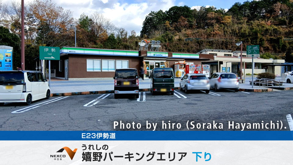 嬉野(うれしの)PA下りは、三重県松阪市嬉野薬王寺町に設置されている、E23伊勢道のパーキングエリア。
