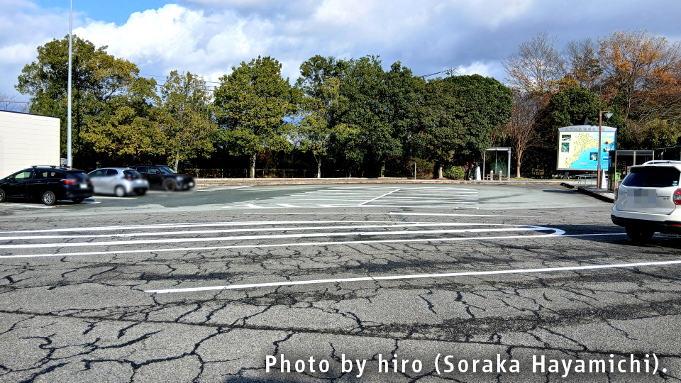 入口通路沿いから眺めた駐車場。