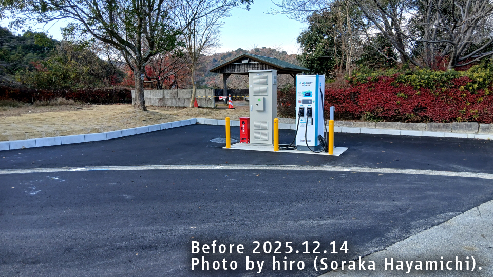 訪問時は入口通路脇でEVスタンドの増強工事を行っていた。裏手に喫煙スペース。
