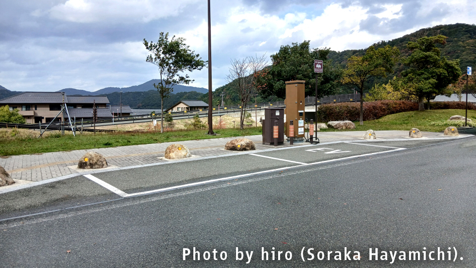 ETC専用のインターチェンジへ向かう通路沿いにEVスタンド。