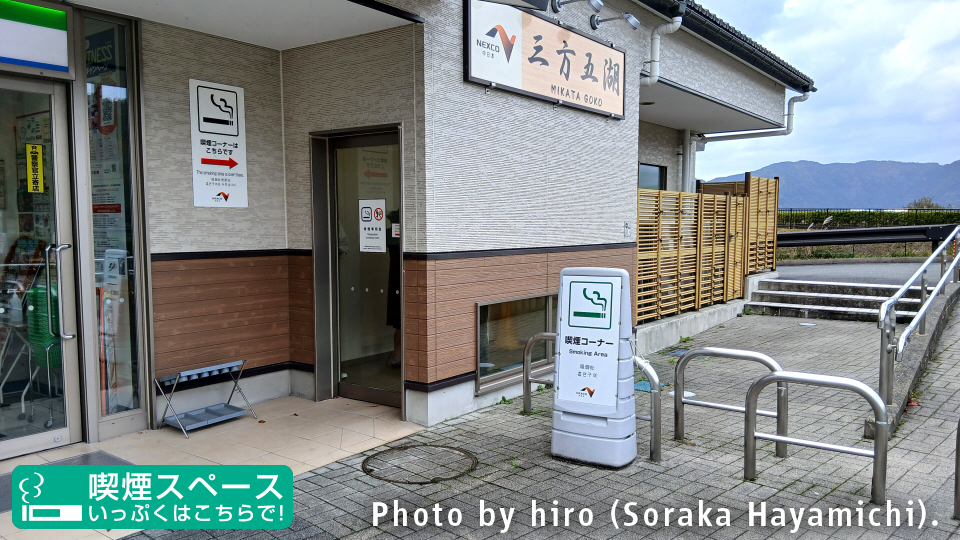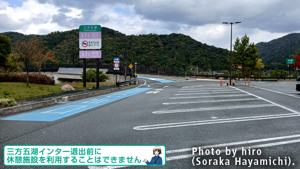 三方五湖インターは出口通路沿いの脇に設けられており、インター入口から休憩施設を利用できない。