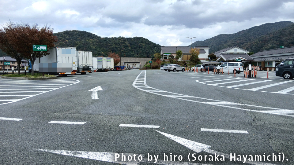 下り同様、上りも小型・大型で駐車マスの占有率はほぼ均等に調整されている。斜めドン付き駐車も下り同様。
