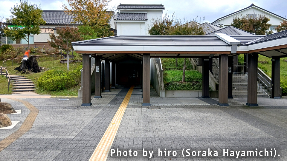 トイレの隣に下りの高台へ通じる階段があり、バリアフリー対策でエレベーターも設けられている。