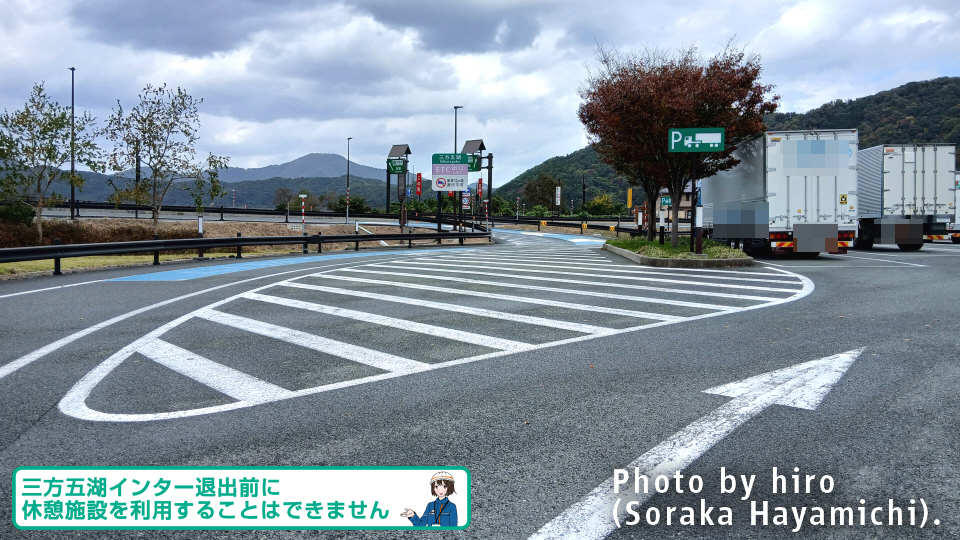 三方五湖インターは、本線復帰通路脇に合流するように作られているため、PAの利用は不可。