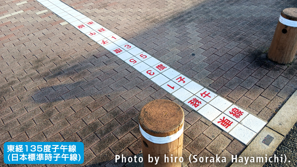 男子トイレの入口付近には、日本標準時子午線(東経135度)が敷かれている。