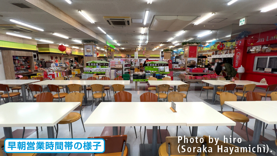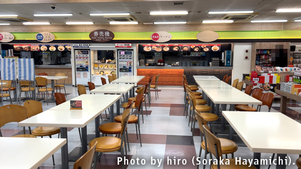 ベーカリーと情報案内所に挟まれる形で食堂を完備。やはり少し手狭な印象がある。