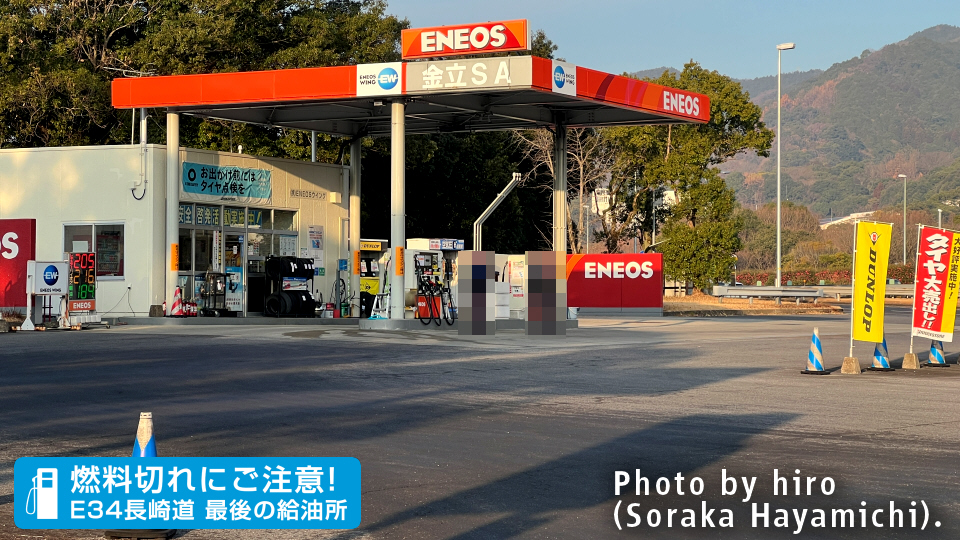 出口通路間際の給油所隣に、金立公園へ繋がるハイウェイオアシスへの出入口通路がある。