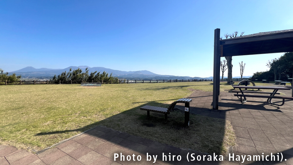 下りと違い、上りはえびの高原を一望できる広大な展望台が入口通路沿いに確保され、実質、公園と化している。