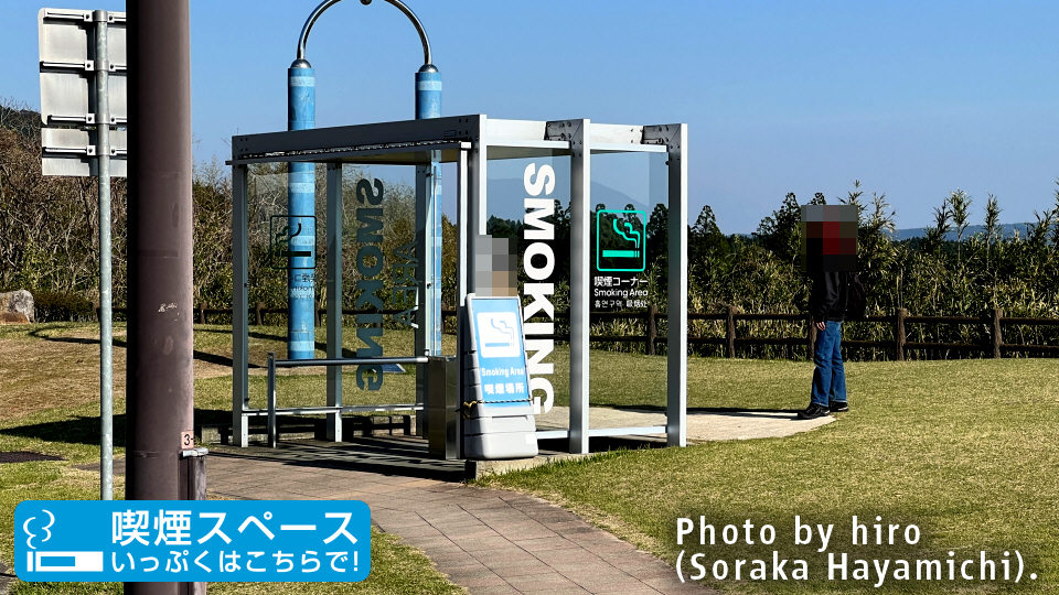展望台そばの公園の一角に喫煙スペース。落ち着いて一服できそうだ。