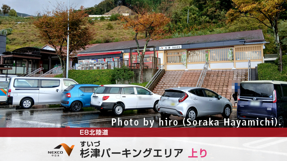 杉津(すいづ)PA上りは、福井県敦賀市杉津に設置されている、E8北陸道のパーキングエリア。上下線が大きく隔離された敦賀湾沿いの難所・杉津地区の一角に設けられている。下りと違い、上りはかつての国鉄北陸線・杉津駅の跡地を道路に転換する形で供用されている。