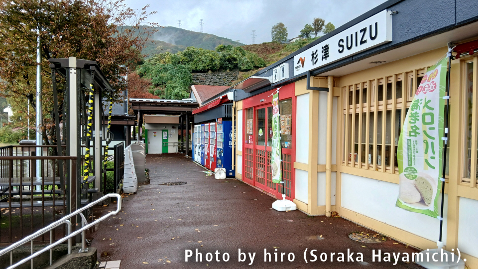 高台に購買施設。旧・国鉄北陸線の杉津駅は、この部分にホームやらがあったとのウワサ。