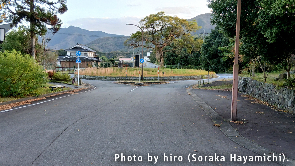 市道経由で、兵庫県朝来市に入った先にもラウンドアバウトがある。