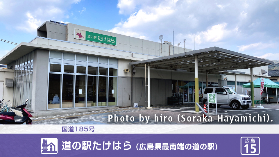 道の駅たけはらは、広島県竹原市本町に設置されている、国道185号の道の駅。広島県最南端の道の駅……なので。