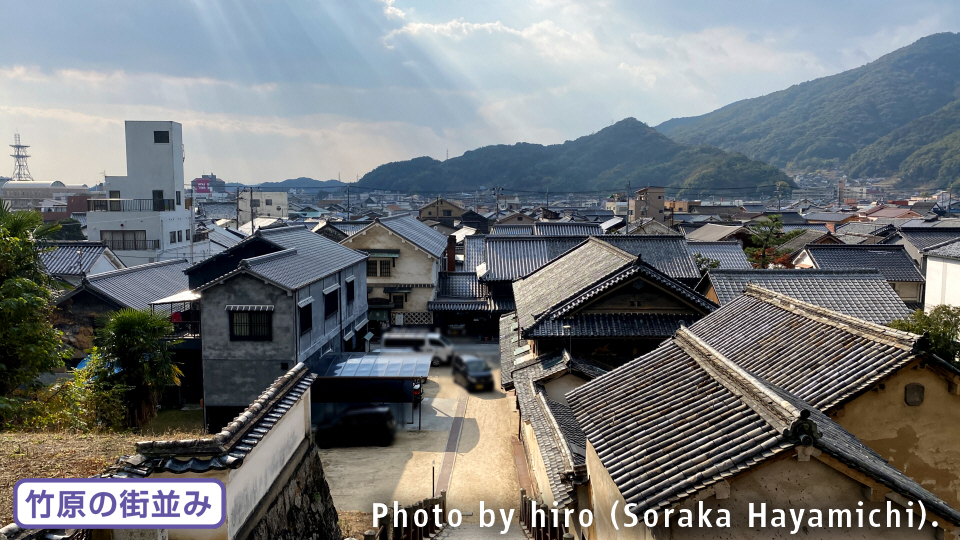 徒歩圏内で竹原の街並みへ向かえる。