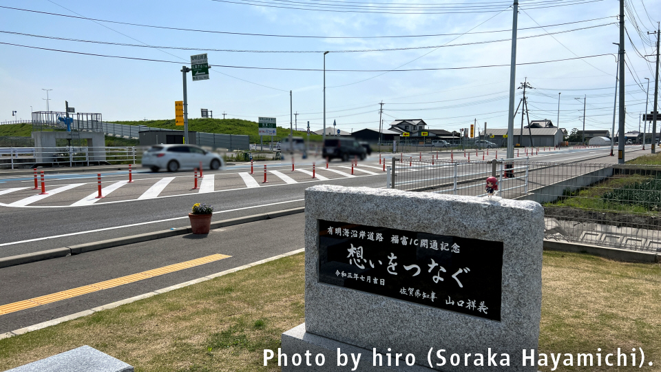 有明海沿岸道路・福富インター開通記念碑(道の駅駐車場内に設置)