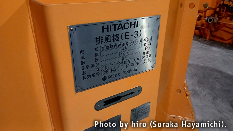 排風機の隣に送風機がある。やはり日立製作所による特注品。